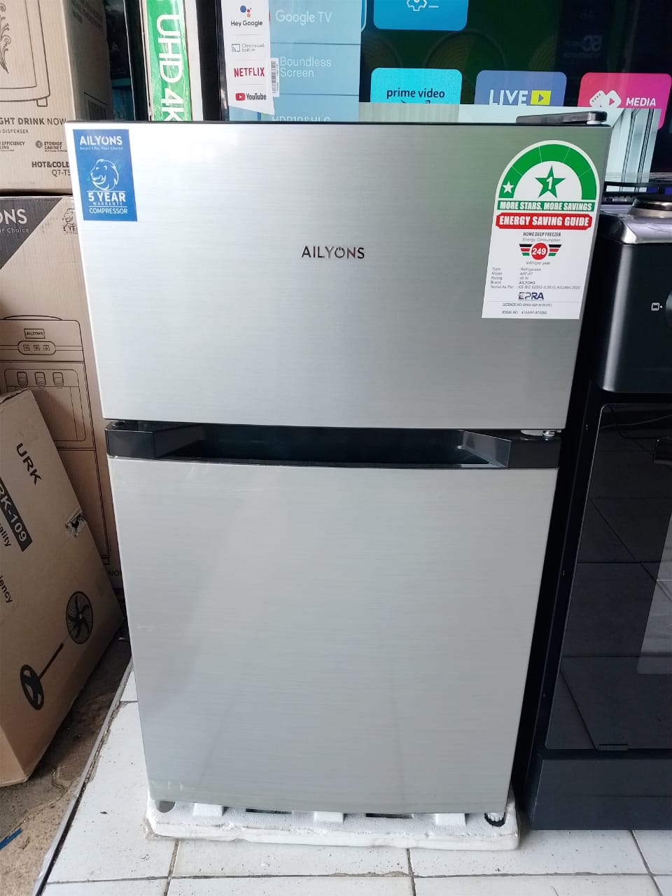 The Ailyons ARF-112 is a compact and efficient double-door refrigerator, ideal for small households, offices, or apartments. With a total capacity of 112 liters, it offers ample storage space while maintaining a sleek and modern design.